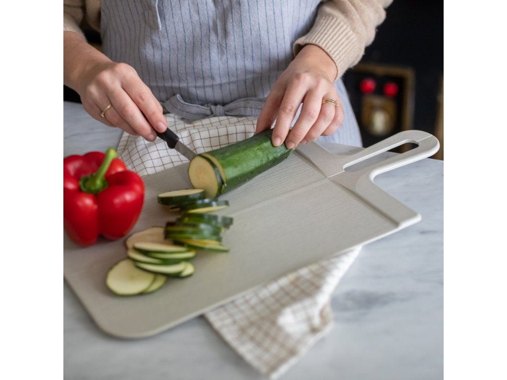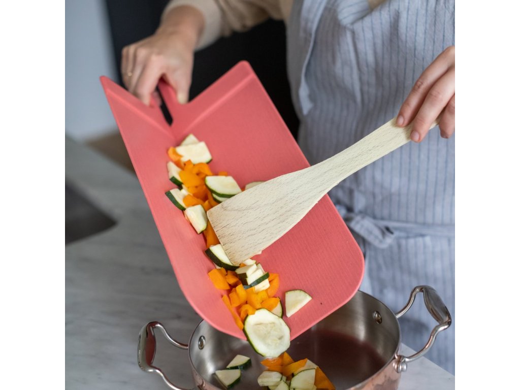 Heb je ooit geprobeerd om de groenten die je net hebt gesneden over te hevelen in een pan met behulp van een vouw snijplank? Zo ja, dan hoeven we je er niet van te overtuigen dat het veel gemakkelijker is dan een standaard snijplank en als je het nog niet geprobeerd hebt, moet je het zeker eens proberen.