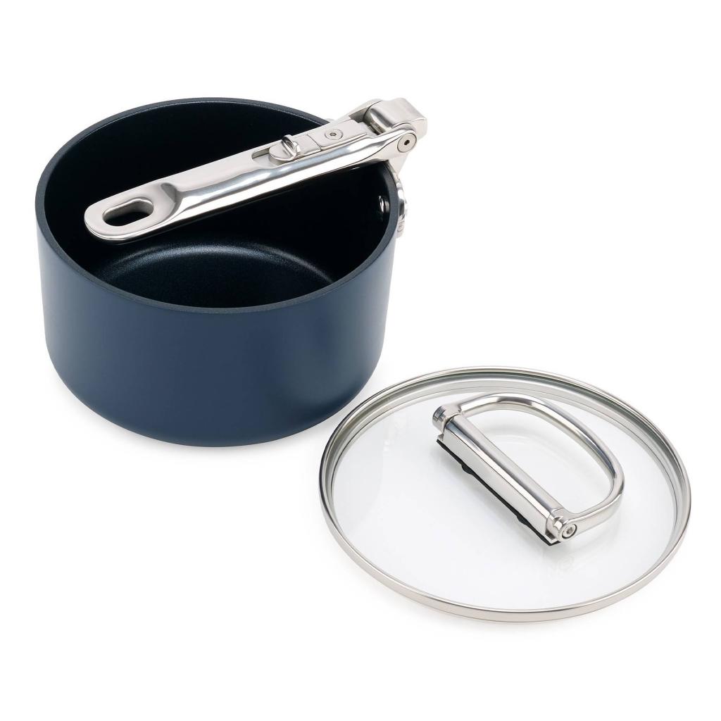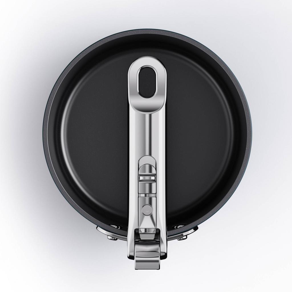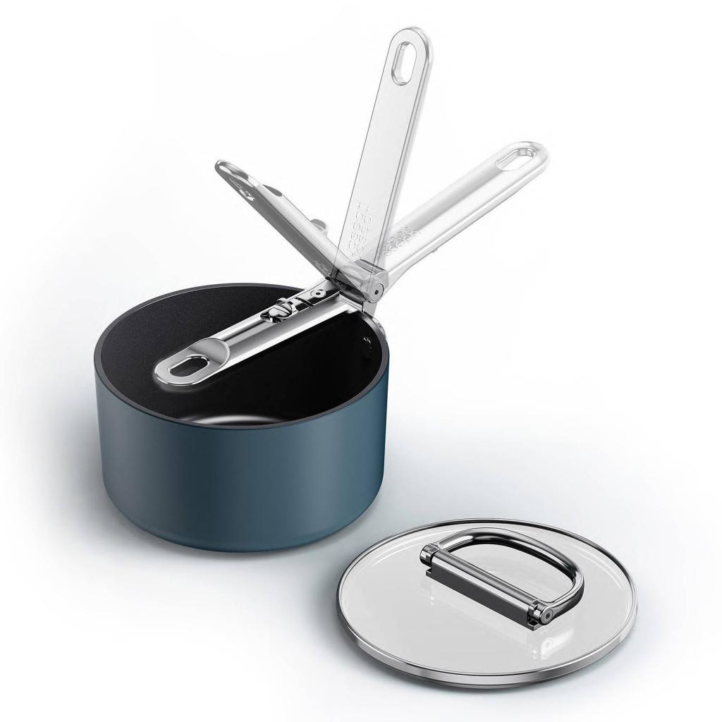 - Dankzij het vouwmechanisme kan de steelpan eenvoudig met ander keukengerei worden gestapeld, waardoor een overzichtelijke en compacte opbergruimte in keukenkasten ontstaat.