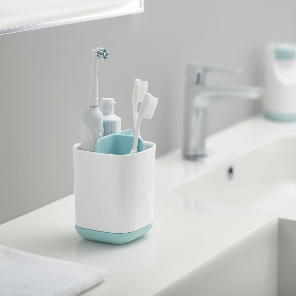 Tandenborstelbeker EASYSTORE, klein, wit / blauw, Joseph Joseph