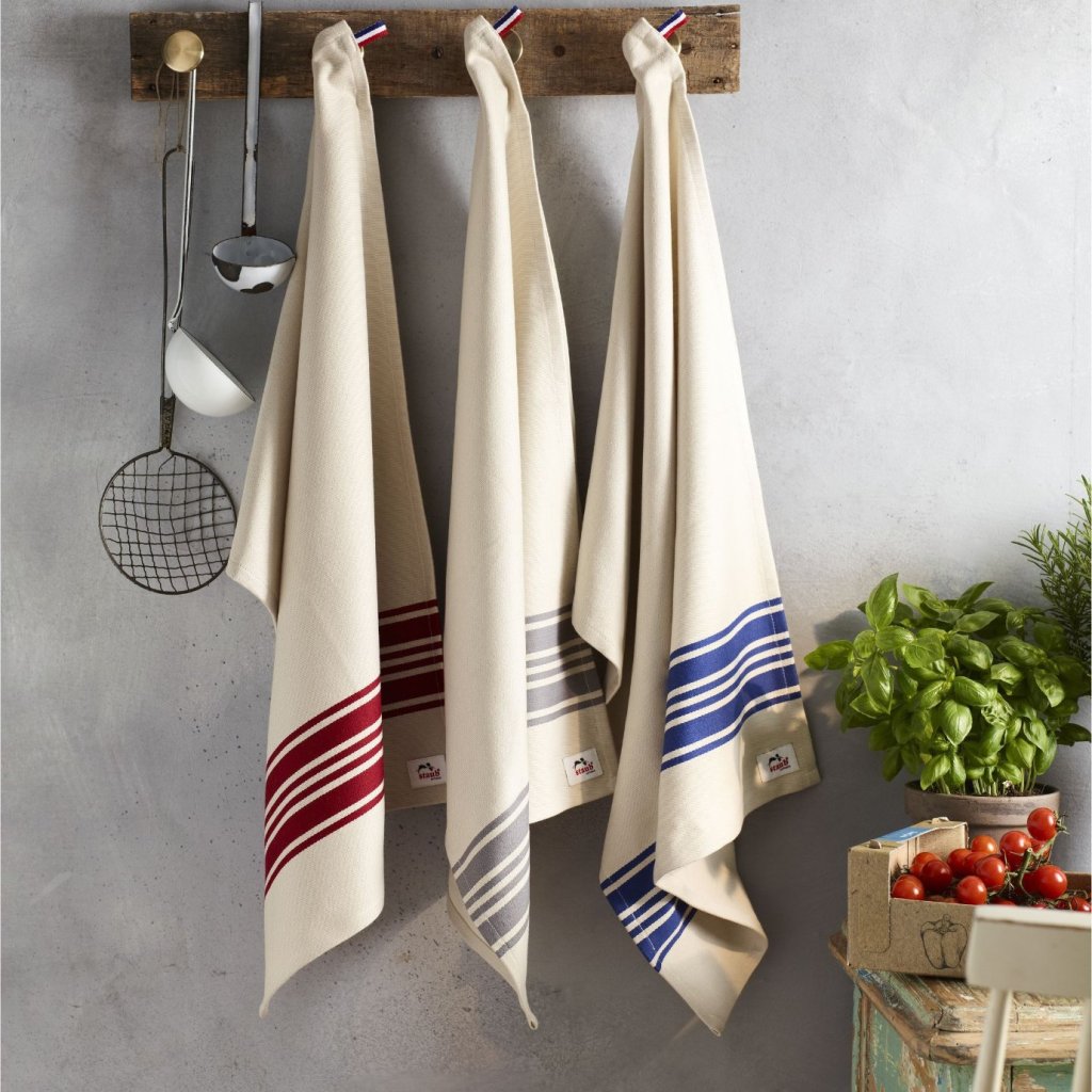 - duurzame en absorberende theedoek met grijze strepen en opvallend logo Staub