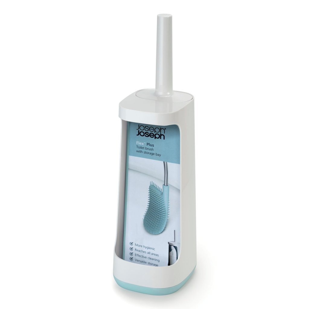 Toiletborstel met houder FLEX PLUS, wit en blauw, Joseph Joseph