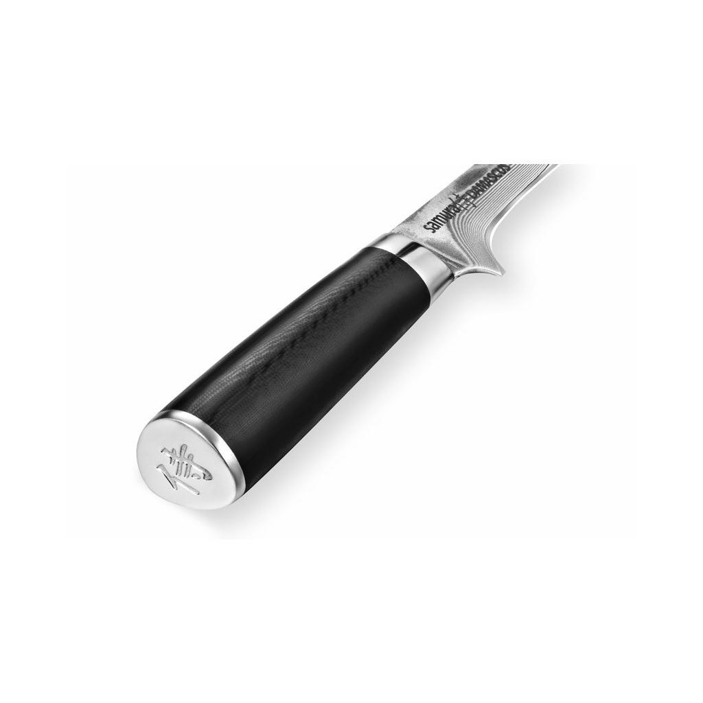 Om vlees en vis voor te bereiden voor hittebehandeling is een duurzaam en flexibel uitbeenmes nodig waarmee u zonder veel moeite de graten, aderen en huid van het vlees kunt scheiden. Het Samura Damascus uitbeenmes is lang en smal, maar ongelooflijk duurzaam. Dit maakt het zeer geschikt voor het hanteren van vlees, kip, vis en ander voedsel. De speciale lemmetvorm en -ondersteuning voorkomen dat het mes tijdens het hanteren wegglijdt, waardoor veiliger en betrouwbaarder kan worden gewerkt.