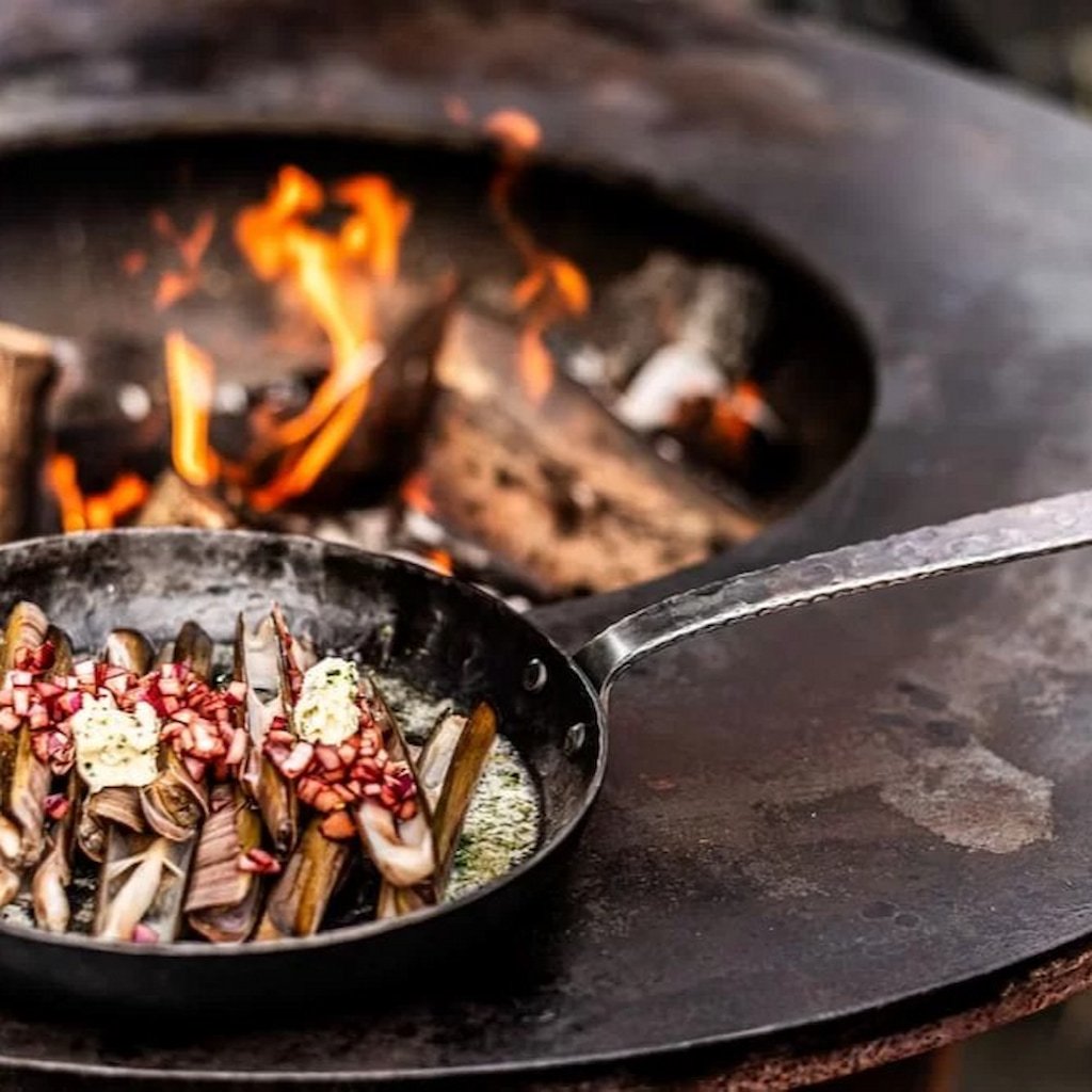 - De stalen pan vereist geen ingewikkeld onderhoud. Gebruik er geen schoonmaakmiddelen op en stop het zeker niet in de vaatwasser.