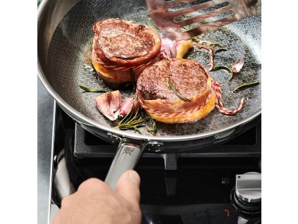 - Roestvrijstalen koekenpannen: geschikt voor bijna alle soorten gerechten die u wilt bakken, braden of dichtschroeien. Ze zijn vrijwel onverwoestbaar en het materiaal biedt een uitstekende warmteverdeling.