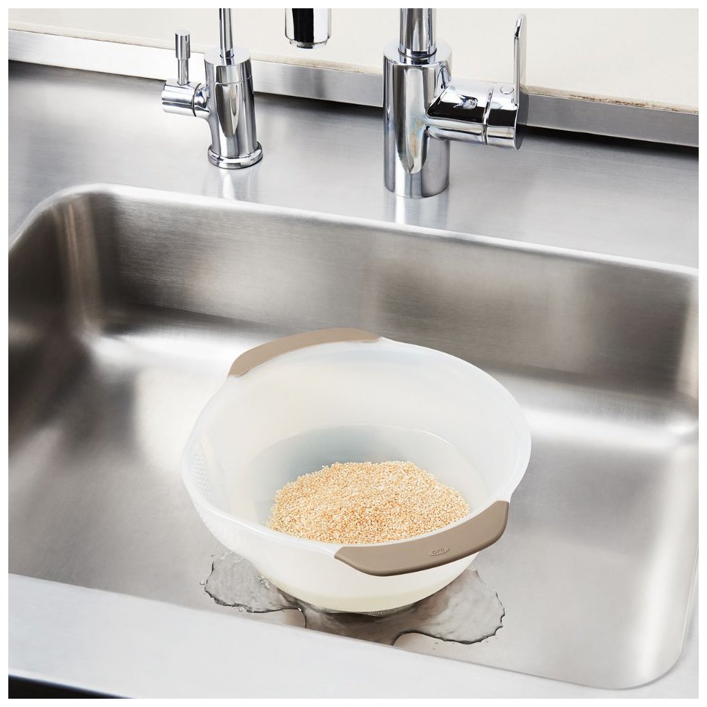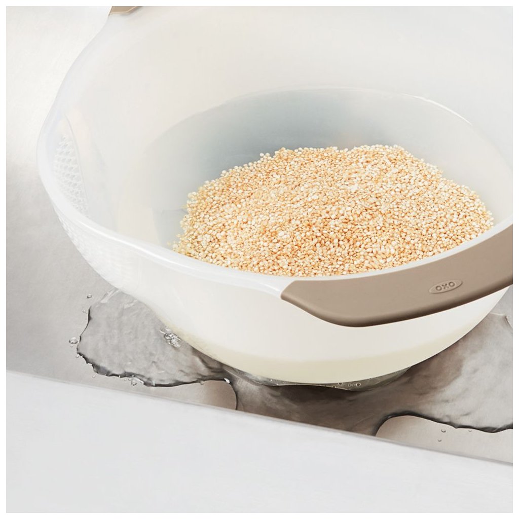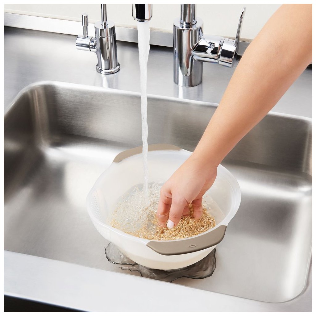 - zachte, comfortabele antisliphandgrepen maken het gemakkelijk om granen te mengen en overtollig water af te schudden