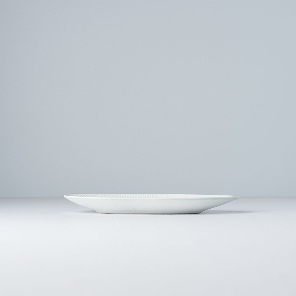 - De fijne radiale textuur op het oppervlak voegt diepte toe aan het bord en benadrukt het handgemaakte karakter van het keramische vakmanschap.