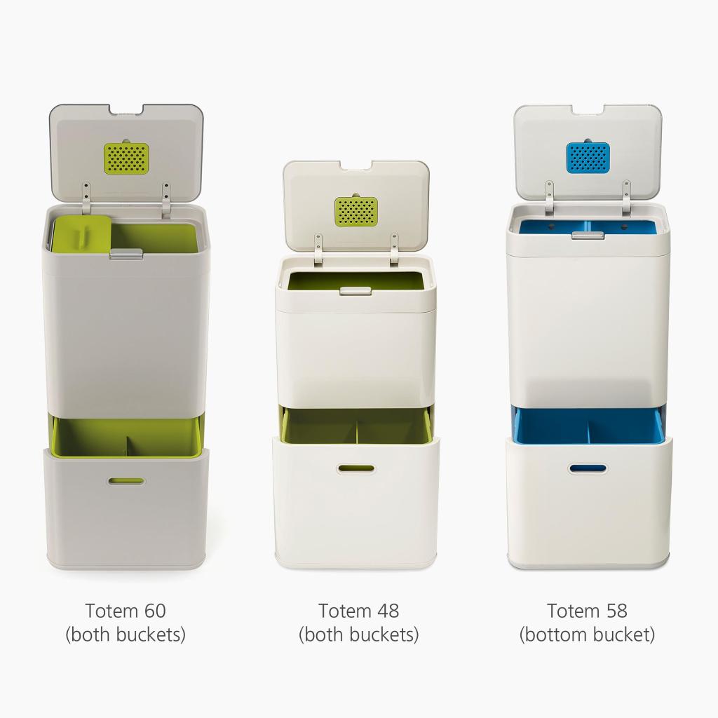 - De tassen zijn ontworpen voor gebruik in de Joseph Joseph TOTEM 60 l originele modellen, TOTEM 48 l en TOTEM 58 l manden in de onderste mand.