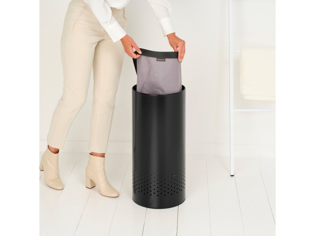 Wasmand 35 l, mat zwart, staal, Brabantia