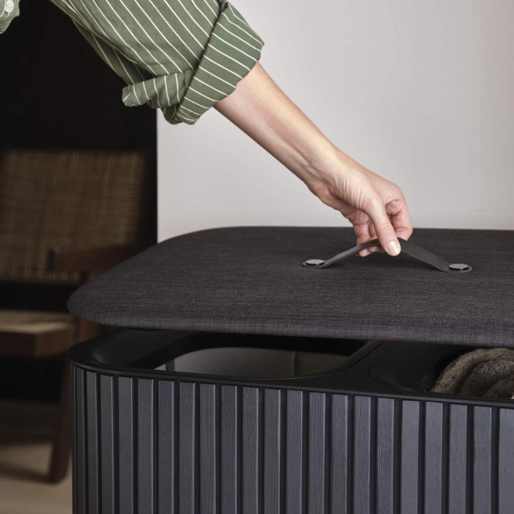 - Het gesloten deksel verbergt discreet het vuile wasgoed en helpt de slaapkamer of badkamer visueel opgeruimd te houden.
