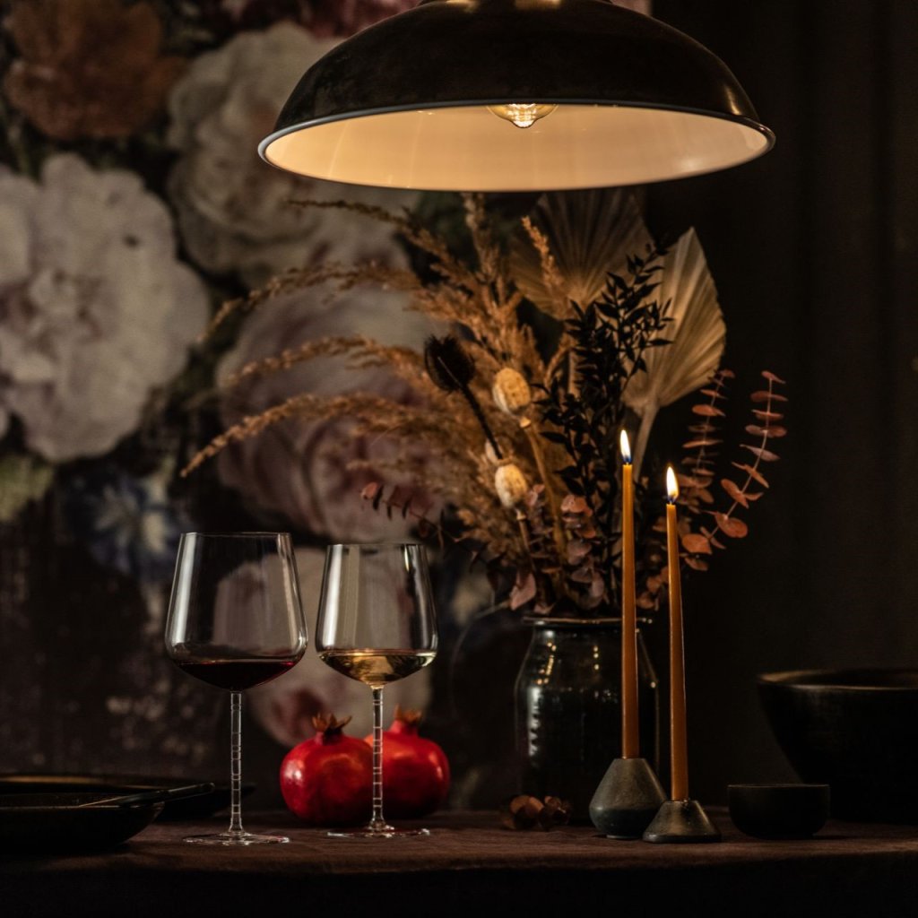 - de hoogte van 229 mm en de diameter van 100 mm maken het glas tot een indrukwekkend maar evenwichtig element van elke tafelsetting