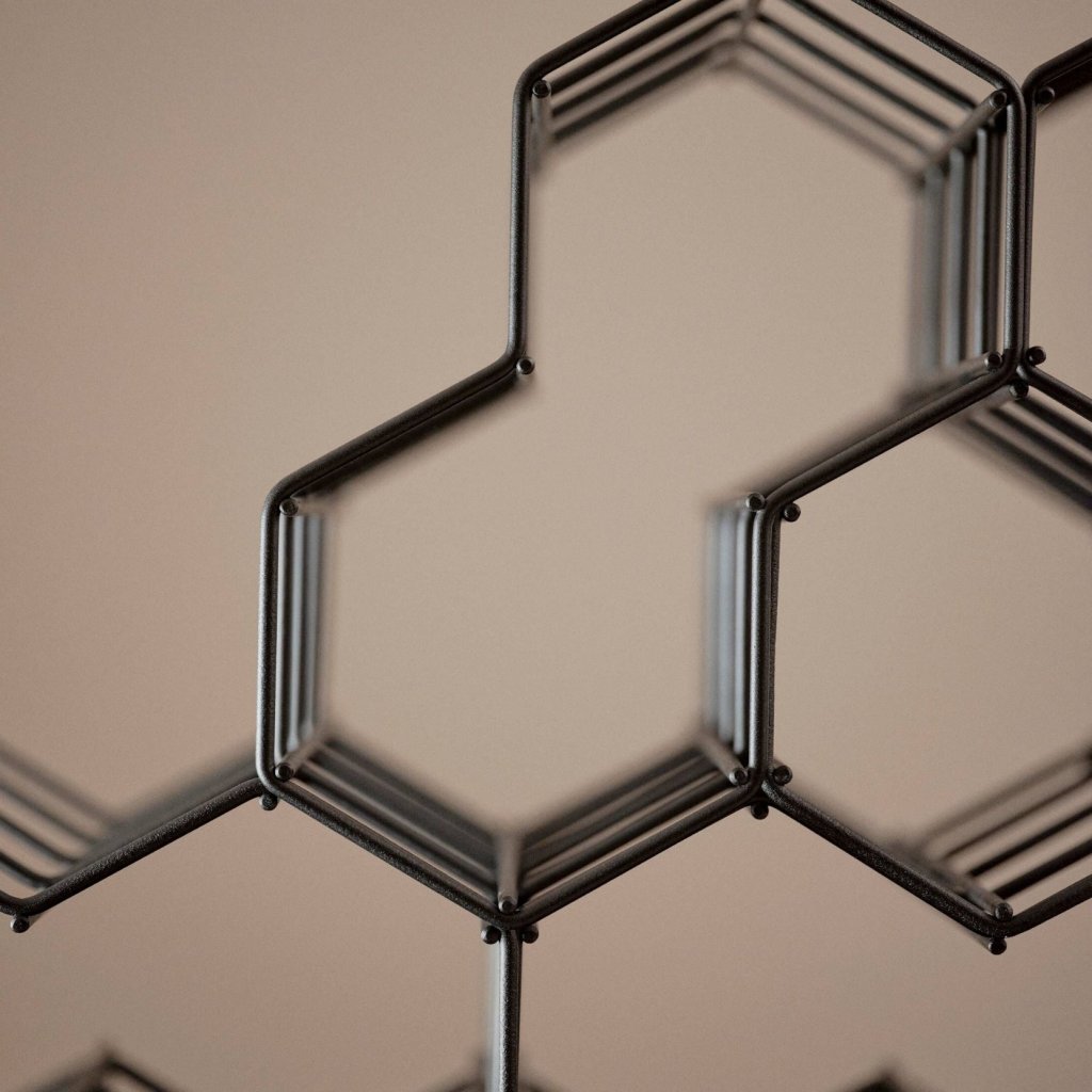- ontworpen door het Mavro//Léfevre-team, geïnspireerd op de minimalistische meubelstijl met metalen draden als belangrijkste element