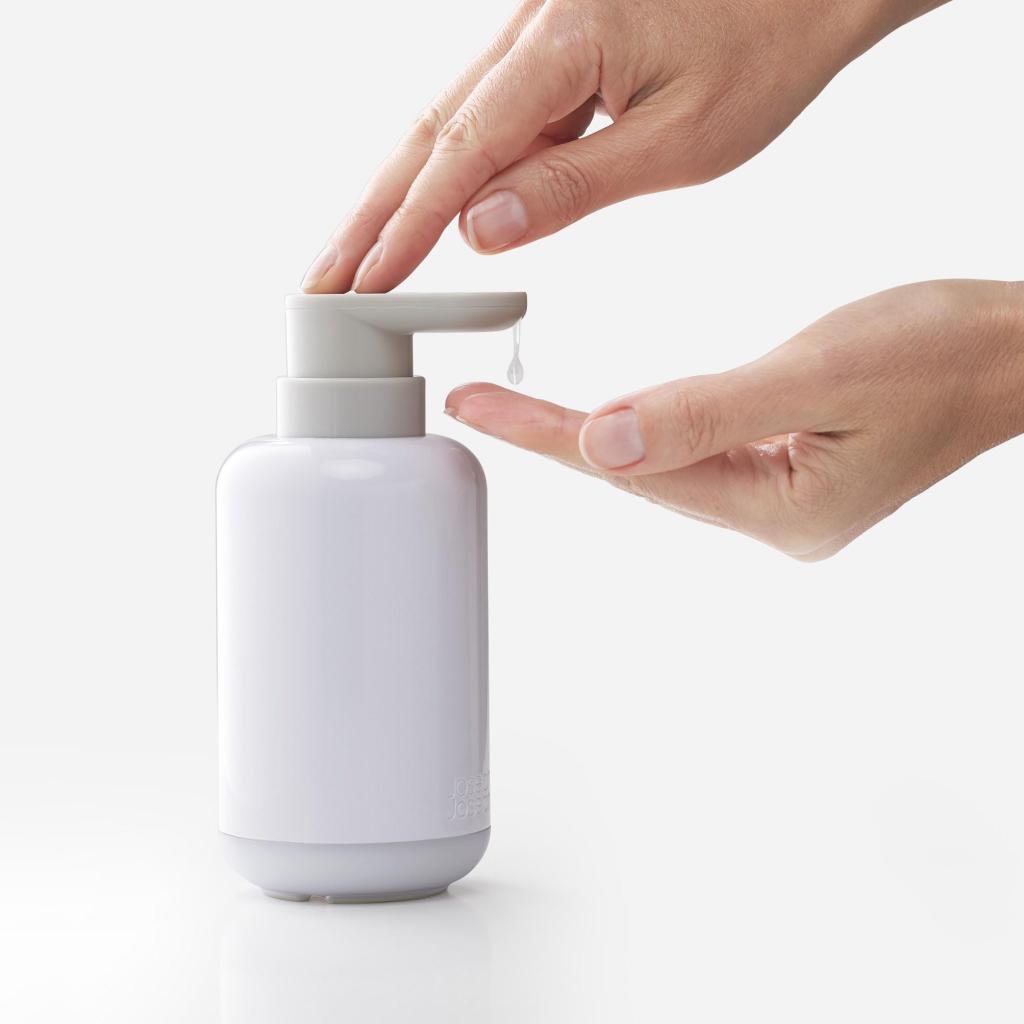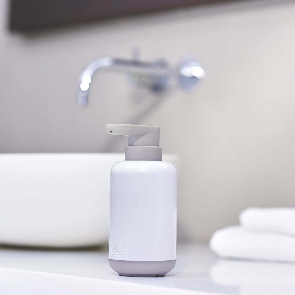 - Zeepdispenser Joseph Joseph DUO 70566 biedt een handige en hygiënische dosering van vloeibare zeep in een modern, compact ontwerp dat geschikt is voor elke badkamer.