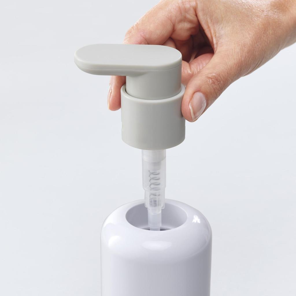 - Het brede bovenoppervlak van de pomp zorgt voor comfortabel handcontact en ondersteunt nauwkeurige dosering van de benodigde hoeveelheid zeep.