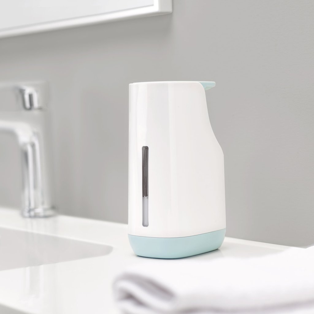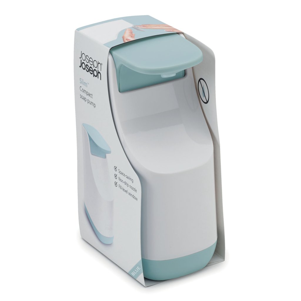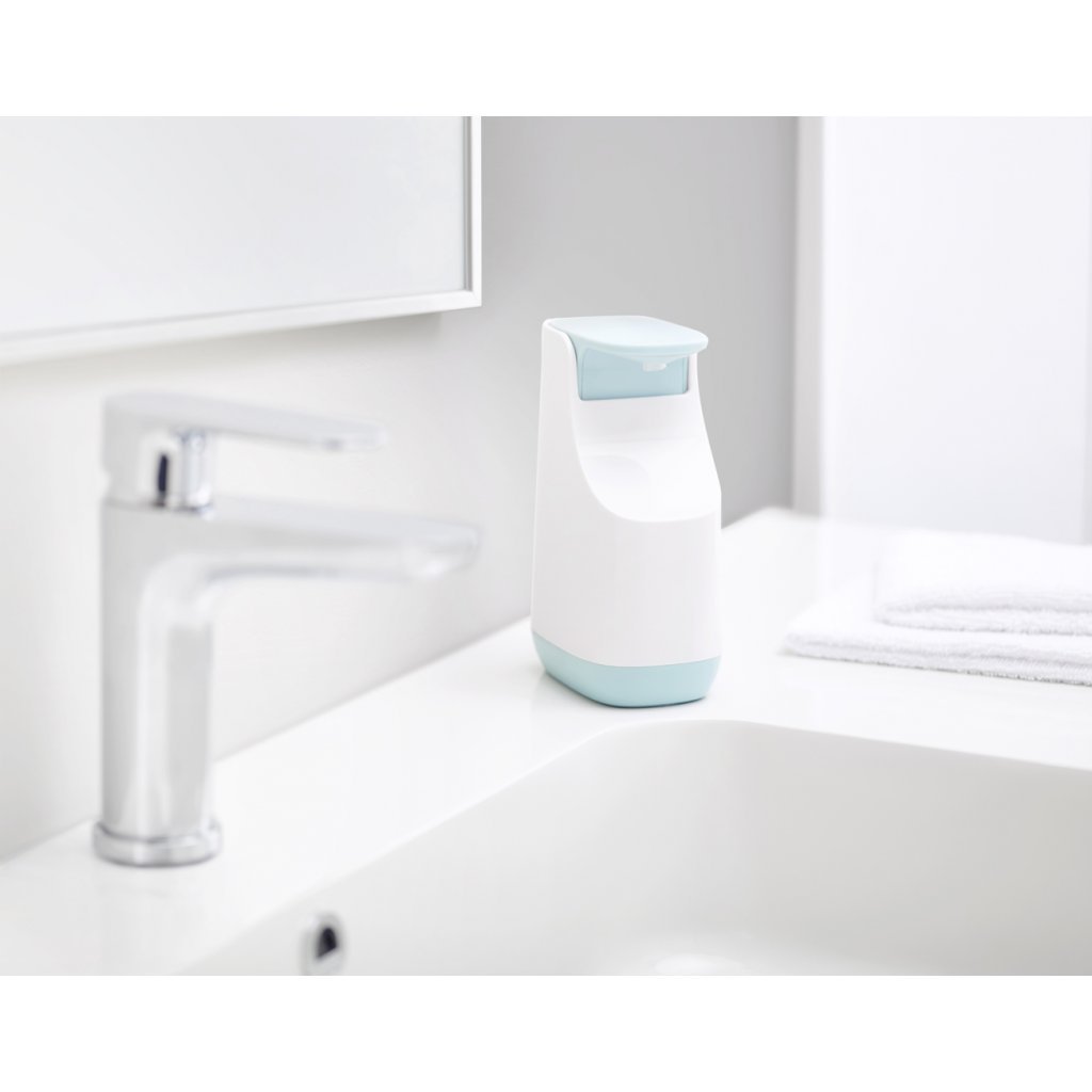 Zeepdispenser SLIM 350 ml, wit en blauw, Joseph Joseph